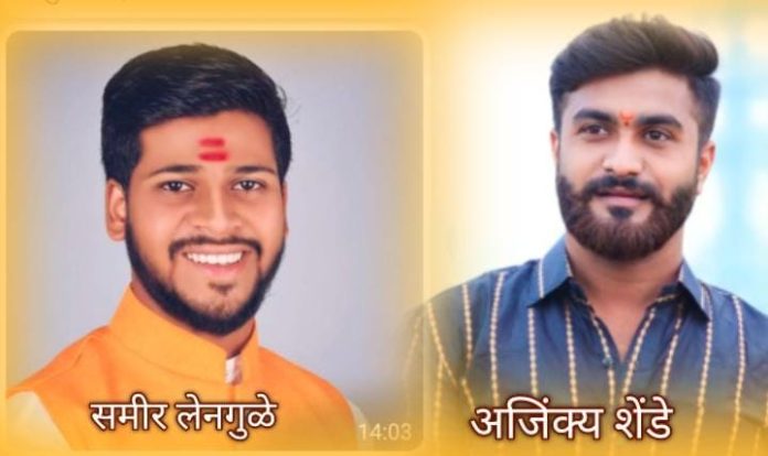 युवासेना जिल्हा समन्वयक  समीर लेनगुळे तर उपजिल्हा प्रमुख अजिंक्य शेंडे यांची फेर निवड.