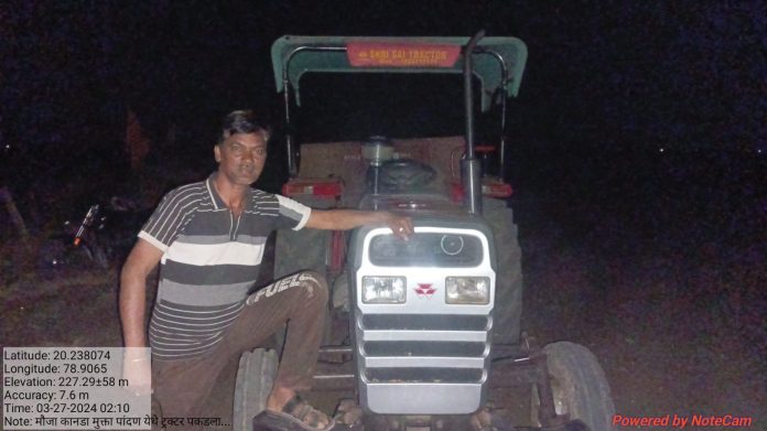 अवैध रेती वाहतूक करणारा ट्रॅक्टर जप्त, तहसीलदार नीलावाड यांची धडक कारवाई.