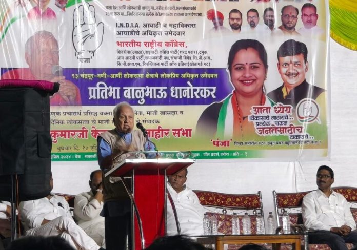 ज्येष्ठ पत्रकार तथा माजी राज्यसभा खासदार कुमार केतकर यांनी नरेंद्र मोदी यांच्यावर वणी येथील प्रचार सभेत हल्लाबोल केला. “देशात लोकशाही पद्धतीनं निवडून येऊन हुकूमशाही लादायची,” अशी घणाघाती टीका कुमार केतकर यांनी केली. काँग्रेस पक्षाच्या चंद्रपूर लोकसभेच्या उमेदवार प्रतिभा धानोरकर यांच्या शेतकरी मंदिर लॉन वणी येथील प्रचार सभे दरम्यान मतदारांनी गांभीर्याने विचार करून मतदान करण्याची गरज असल्याचे प्रतिपादन केले.