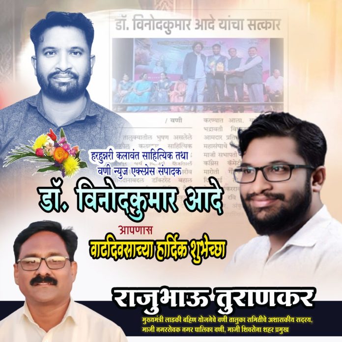 आई वडीलाच्या प्रेमातून शिकवणीतून आज कलाक्षेत्रात उत्कर्षाचा झेंडा लावणारे डाॅ. विनोदकुमार यांचा जन्मदिवसा च्या निमित्ताने लोकवाणी जागर परिवाराकडून मंगलमय आयुष्याच्या अनंत कोटी हार्दिक शुभेच्छा.