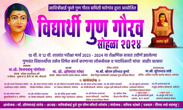 आनंद नक्षणे: मारेगाव सावित्रीबाई फुले गुण गौरव समिती मारेगावच्या वतीने माध्यमिक व उच्च माध्यमिक शालांत परिक्षेत वैशिष्ट्यपुर्ण गुण घेऊन उत्तीर्ण झालेल्या विद्यार्थ्यांचा सन्मान सोहळा आयोजित करण्यात आला आहे.