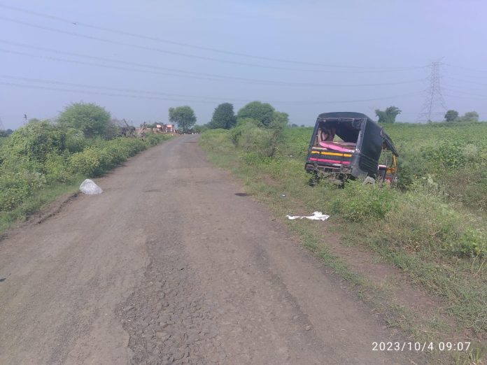 शाळकरी विद्यार्थी ऑटो पलटी, एक इसम ठार, चार विद्यार्थी जखमी.