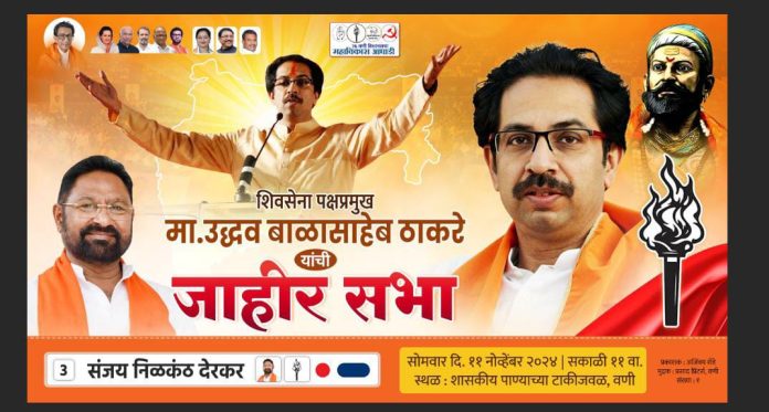महाराष्ट्र राज्याचे माजी मुख्यमंत्री शेतकऱ्यांचे कैवारी उध्दव बाळासाहेब ठाकरे यांची उद्या महाविकास आघाडीचे (ऊबाठा) गटाचे अधिकृत उमेदवार संजय देरकर यांच्या प्रचारार्थ भव्य अश्या ऐतहासिक सभा वणी येथिल पाण्याच्या टाकी जवळील शासकिय मैदानावर आयोजित करण्यात आली आहे.