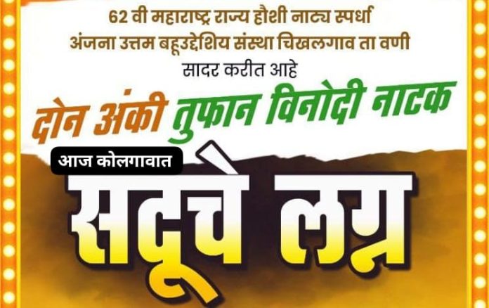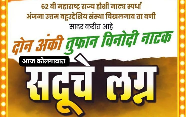 राजु तुरणकर मारेगावं – तालुक्यातील कोलगांव येथे आज रात्री सात वाजता तुफान विनोदी दोन अंकी नाटक “सदू चे लग्न” चा नाटय प्रयोग होणार आहे.