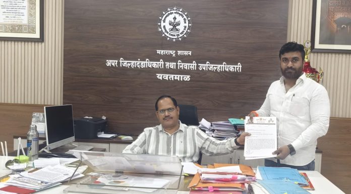 तालुक्यातील नायगाव (झोला) शिवारात करोडो रुपयांचा शासनाचा महसूल खनिज संपत्ती अवैधरीत्या उपसा करून चोरीला गेला. त्यात मशीन मालकावर गुन्हा दाखल न करता थातुरमातुर कारवाई केली. अशातच वणी तहसील प्रशासनाने संबंधित मंडळ अधिकारी व तलाठी यांच्यावरही कारवाई केली नाही. याप्रकरणी मंडळ अधिकारी व तलाठी यांच्यावर तत्काळ निलंबनाची कारवाई करावी, अशी मागणी युवासेना उपजिल्हाप्रमुख अजिंक्य शेंडे यांनी जिल्हाधिकाऱ्यांमार्फत महसूलमंत्र्यांकडे निवेदनातून केली.