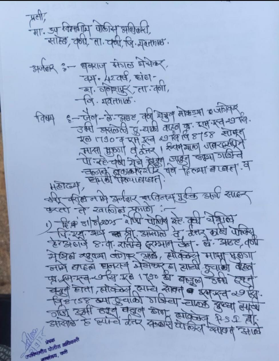 वणी पोलिसांवर गंभीर आरोप. उपविभागीय पोलिस अधिकाऱ्यांना निवेदन.