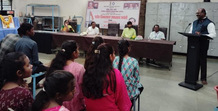 अध्यक्षस्थानावरून बोलतांना प्राचार्य राजेश ढबाले यांनी पं. दीनदयाल यांच्या विचारांचे महत्व सांगून प्रत्येक युवकांनी आपल्या जीवनात याचे अनुकरण करावे असे आवाहन केले.या कार्यक्रमाचे सूत्रसंचालन शिल्प निदेशिका रीना पेंढारकर व आभार प्रदर्शन शिल्प निदेशक मोहन पायघण यांनी केले.