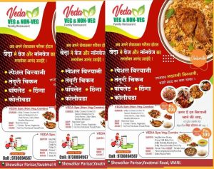 वणीतील मुंबई म्हणून ख्याती असलेला या राम शेवाळकर परिसरात अतिशय सुंदर व्यवस्था असलेले वणी शहरातील एकमेव आपले कुटुंबासोबत जेवणाचा मनमुराद आनंद घेण्यासाठी, वेदा हे सुसज्ज असे रेस्टॉरन्ट आहे. यात दिडशे लोकांची एकाचवेळी बैठकीची व्यवस्था आहे. खालच्या भागात लाईव्ह किचन आहे. तर पहिला व दुसरा माळ्यावर बैठक व्यवस्था केली आहे. या सह वाढदिवस पार्टी,  स्पेशल ओकेशन, फॅमिली पार्टी, ग्रुप पार्टी, मिटिंगसाठी वेगळी व्यवस्था ग्राहकांना येथे त्यांच्या सोई नुसार, करून मिळणार आहे. अखिल सातोकर वेदा वेज, नॉनव्हेज रेस्टॉरन्ट राम शेवाळकर परिसर, यवतमाळ रोड वणी अधिक माहितीसाठी संपर्क: 9730894567