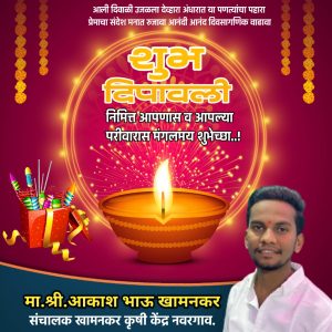 मा. श्री. आकाश खामनकर संचालक खामनकर कृषी केंद्र नवरगाव कडून दीपावलीच्या हार्दिक शुभेच्छा.