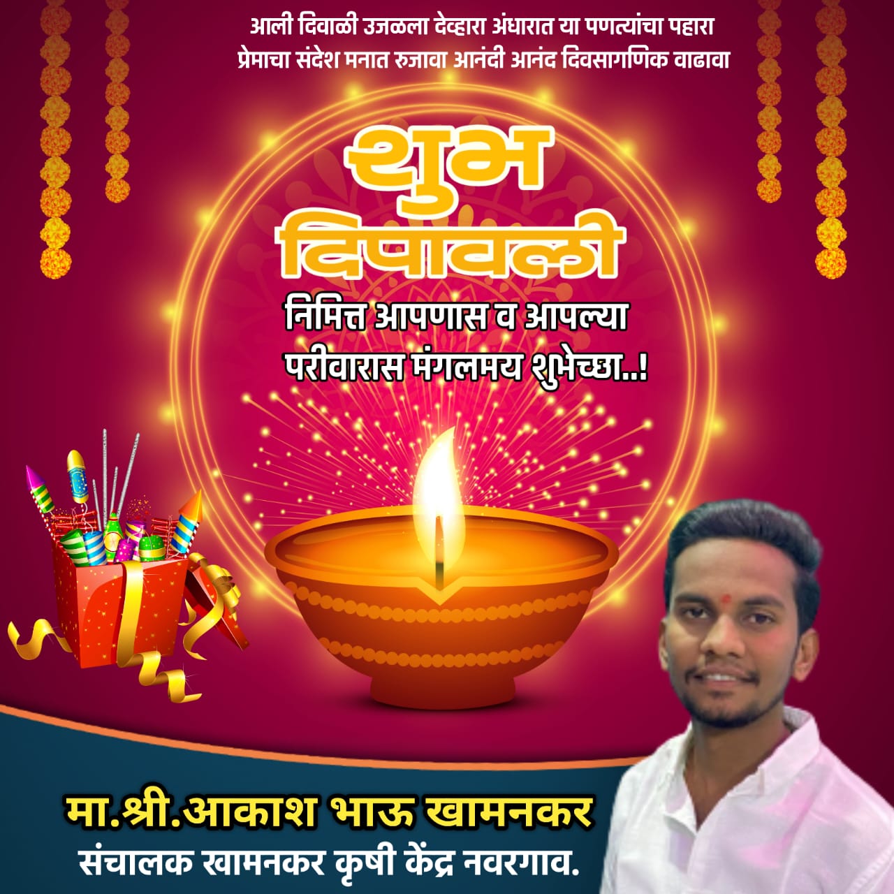 आकाश खामनकर संचालक खामनकर कृषी केंद्र नवरगाव कडून दीपावलीच्या हार्दिक शुभेच्छा.