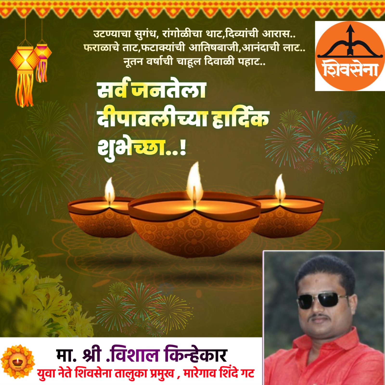 शिवसेना तालुकाप्रमुख विशाल किन्हेकर यांच्याकडून तमाम जनतेस दिवाळीनिमित्त हार्दिक शुभेच्छा.