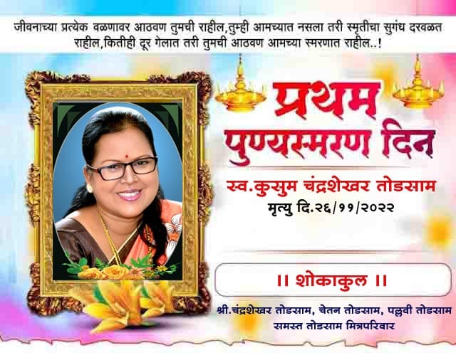 स्वर्गीय शिक्षिका कुसुम चंद्रशेखर तोडसाम यांना प्रथम स्मृतिदिन निमित्ताने विनम्र अभिवादन.