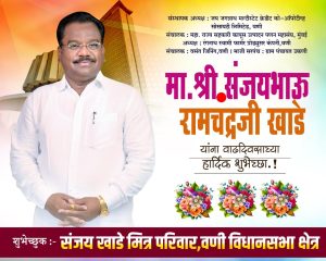 वणी विधानसभा क्षेत्रातील राजकीय पटलावर मागील दोन वर्षांपासून सातत्याने चमकणारा शुक्रतारा संजय खाडे यांनी आपल्या सामाजिक कार्यातून सर्वच स्तरातील लोकांमध्ये आपली छाप निर्माण केली असून,  आज त्यांनी जनसामान्यात प्रचंड लोकप्रियता निर्माण केली आहे. वाढदिवसाच्या निमित्ताने त्यांना खूप खूप हार्दिक शुभेच्छा व जाणून घेऊया अल्पसा जीवन परिचय.