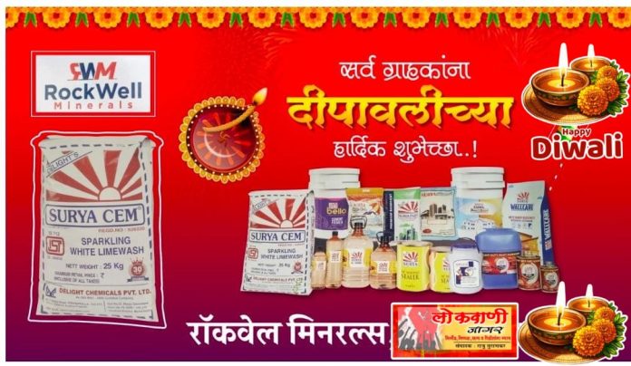रॉकवेल मिनरल्सची प्रमुख उत्पादने नॉनमेटॅलिक खनिज उत्पादनांच्या निर्मितीमध्ये उप-वर्गीकृत आणि खाण्याचा चुना वगळता क्विकलाइम स्लेक्ड चुना आणि हायड्रॉलिक चुनाच्या निर्मितीमध्ये नामांकित उत्पादने निर्माण करणाऱ्या रॉकवेल मिनरल्स या कंपनीकडून वणी भालर परिसरातील तमाम जनतेस दीपावलीच्या हार्दिक शुभेच्छा….